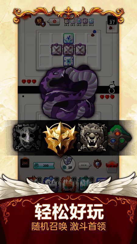 召唤合成完全随机,比策略更具个人特色,三分钟一场比赛,节奏轻松有趣。所有地图随机生成,每次面对不同敌人,需找出弱点快速击败。炫酷设定搭配方块组合,有百种战术,实时匹配带来超有趣的随机对抗。解锁强大道具可助力击败对手,随时都能畅玩。