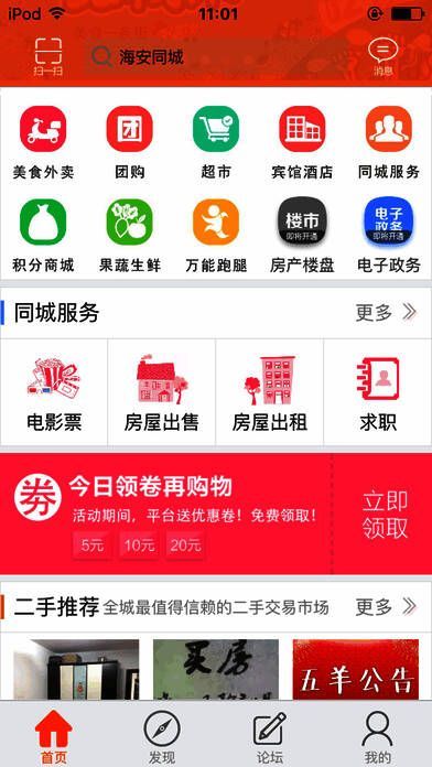 海安同城APP依托移动互联网、信息技术以及线下服务能力,为消费者提供可靠的本地商家信息、消费评价和优惠资讯,还涵盖团购、预约预订、外送、电子会员卡等O2O闭环交易服务,几乎覆盖了餐饮、电影、酒店、休闲娱乐、丽人、结婚、亲子、家装等所有本地生活服务领域。