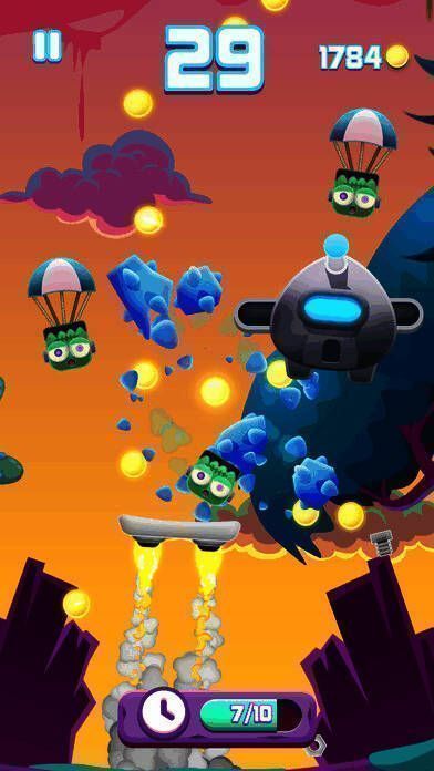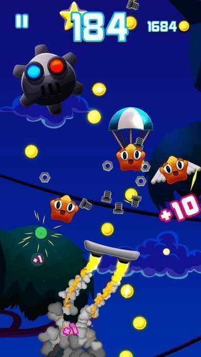 玩家在游戏中要操控一个由火箭推动的平台,带着角色不断上升。不过在这个过程中会遭遇各种阻碍,从石块到炸弹,威力各异,有时甚至要让角色与平台分离才能化险为夷。当然,你也能拾取不少增分道具,解锁更多新奇有趣的冒险主题。