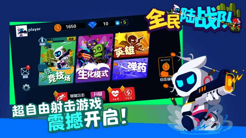 全民陆战队官网版是一款运用特色动画画风打造的IO射击休闲手游。和普通射击游戏不同,玩家除了使用手中武器击败强敌,还需合理利用捡到的丰富道具,并且可以对这些道具进行任意组合,以此助力更好地战斗,带来独特的射击体验。