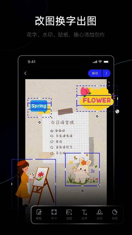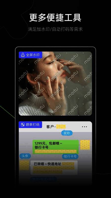 同时,该软件支持商品与人像的精准抠图,大幅提升图像处理效率。全屏水印功能则让用户自由设定样式与位置,确保原创作品不被非法盗用。所有素材、字体均来自正版授权渠道,从根本上保障用户的版权安全。
