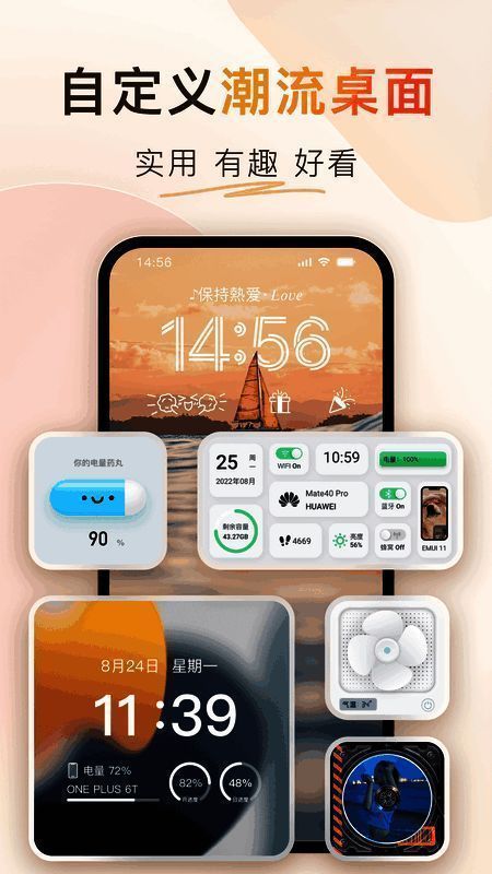 Colorful Widget的核心亮点在于其庞大的资源库与高度自由的定制能力。无论是风格各异的主题图标、实用的桌面小组件,还是充满创意的聊天皮肤和动态壁纸,都让用户拥有无限选择空间。同时,应用支持透明度调节、背景图替换等功能,使每位用户都可以根据个人喜好进行深度个性化设置。