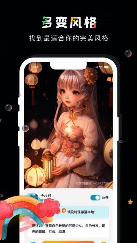 这款应用的最大亮点在于其创新的AI绘画体验。用户不仅能通过文字生成图像,还能使用图片生成图片的功能,解锁更多可能性。无论是热门的二次元形象生成,还是个性化的风格转换,AI梦工厂都能满足你的创作欲望。此外,平台还提供轻松愉快的互动环境,让每一次创作都充满乐趣。
