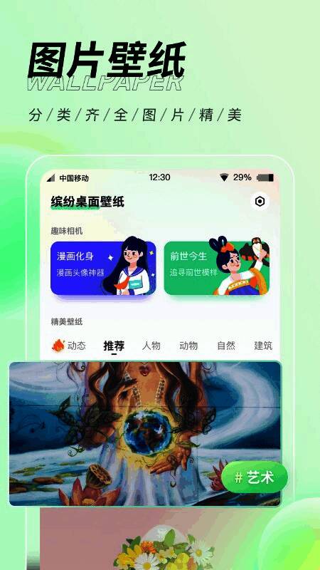 《缤纷桌面壁纸》汇聚了种类繁多的高清壁纸资源,涵盖自然风光、动漫卡通、明星偶像、科技未来等多个主题,满足不同用户的审美需求。所有壁纸均可一键下载,并支持自动适配屏幕尺寸,确保每一幅壁纸都完美贴合你的手机界面。