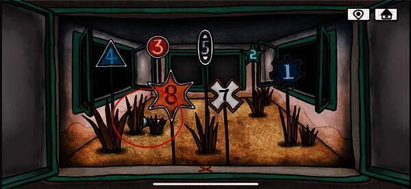 6、回盒子场景按线索挖掘得太阳符石,摆好三个符石获涂鸦纸片。