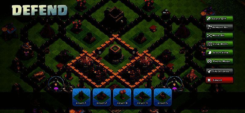 3、升级防御端建筑:城堡(援兵参与防守)、王(体力就绪时参与防守)、加农炮、迫击炮、炸弹塔、箭塔、法师塔、电塔、X 弩、地狱塔、天鹰火炮、火箭、空气炮、各种陷阱和墙。加粗的防御建筑陆空兼顾,优先升级;火箭和空气炮只能对空,但后期防御龙流和电龙时至关重要。