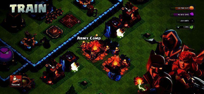 2、升级进攻端建筑:城堡(增加援兵数量)、王(拥有强大攻击力和技能)、兵营(增加军队容量)、实验室(研究提升兵种等级)、法术工厂与黑暗法术工厂(增加法术容量并解锁新法术)、训练营与黑暗训练营(解锁新兵种)。