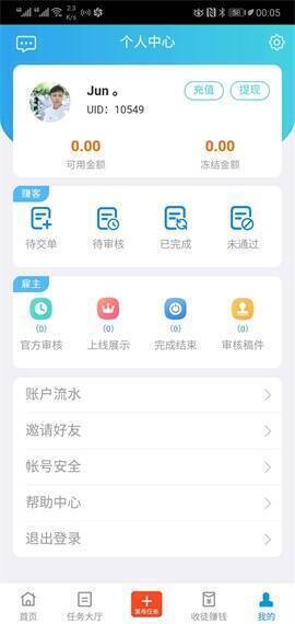 1、注册账号后,就能进入“任务大厅”,通过承接不同类型的任务来赚钱。