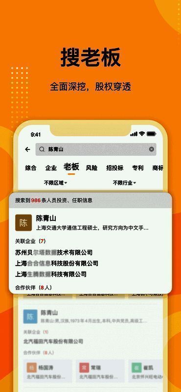 1.助力业务对接,掌握竞争发展趋势,快速查询上下游合作企业信息。