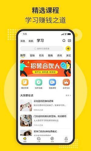 2. 可在互联网上进行推广和学习,持续扩大人脉和联系圈,寻觅更多商机。软件中有大量创业教程和学习经验,能有效提升学习进度。