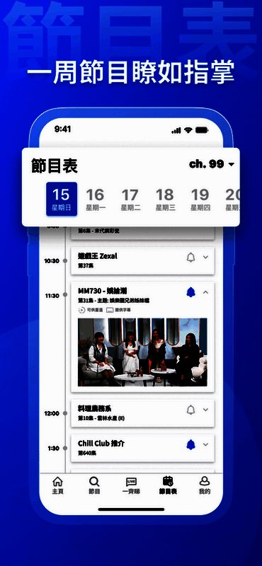 节目表:清晰呈现一周节目安排,可设定直播提示,不错过喜爱节目。