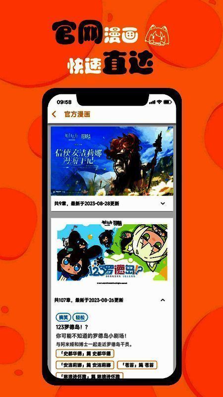 2、整合官方漫画,支持一键在线看漫画,还推荐热门创作和视频。