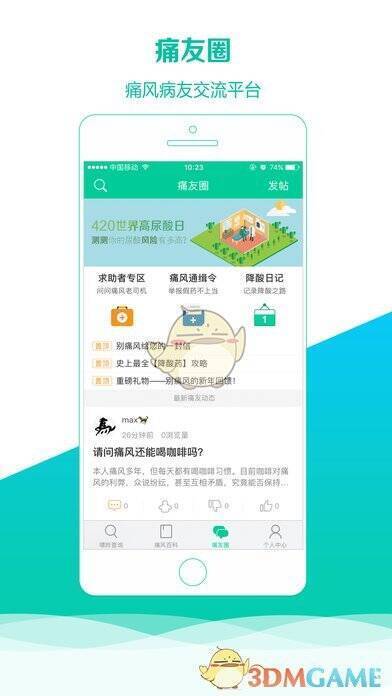 平台设有痛友圈,汇聚全国痛友,大家分享知识,相互激励,即使痛风也能享受生活。