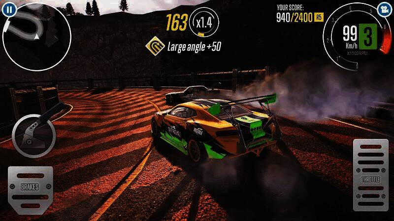 1. 赛车漂移:游戏以赛车漂移为核心玩法,玩家需掌握精准操控技巧,才能在赛道上完成高难度漂移操作。