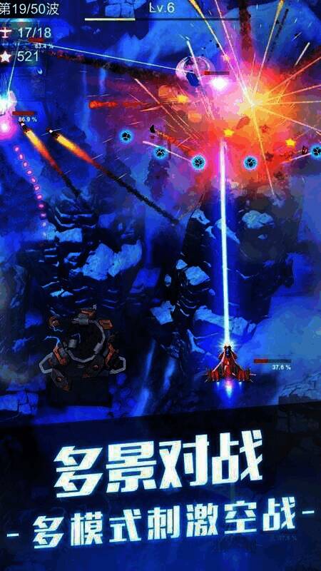 孤独战机的特色在于华丽的战场和极致的冒险体验,能让玩家尽情释放活力。