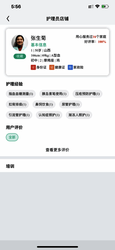 因工作忙碌,我在去年和今年两次通过这个软件找护工,都让母亲和家人十分满意。护工耐心周到,具备专业护理技能,一看就是受过专业培训的,给我们帮了大忙,特别值得信赖和称赞!