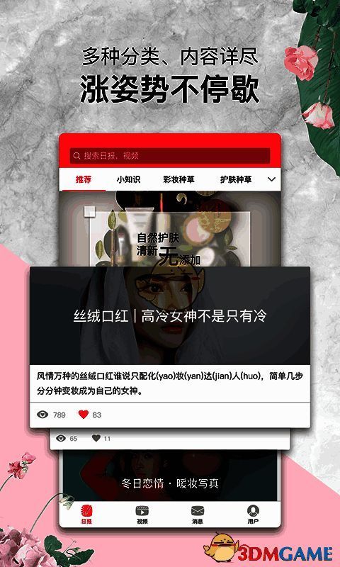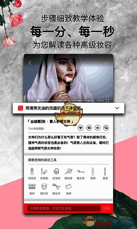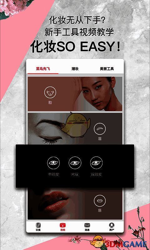 【日报】梳理潮流资讯、美妆小贴士、好物推荐、护肤心得等,每日推送精选美妆教程,让你出门美美的。【菜鸟先飞】为零基础新手准备必备彩妆技巧,按脸、眼、眉、唇细致分类,少走弯路。【大神有约】有原创优质专业教程视频,跟着专业彩妆师学化妆,学成后变身美妆达人。【分频教学】具备视频分频教学功能,独特的“镜子”功能,可边照镜子边同步学化妆。【魔镜魔镜】是你的随身化妆镜,让你随时补妆,时刻美丽。