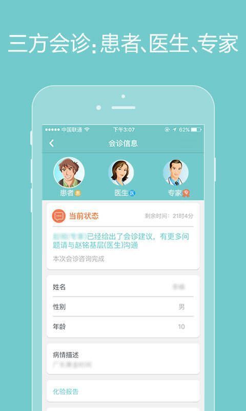 患者可自主挑选合适的医生和专家,发起线上咨询、专家会诊和门诊预约;通过搭建三层分级诊疗服务,能向基层医生、普通医生和专家发起问诊、会诊和转诊。具体患者选择有:疑难病患者可经门诊医生向专家发起会诊或门诊预约;通过多种搜索找适合的医生建立咨询关系进行线上咨询;可在病历咨询、电话咨询等多种方式中任选;能在线与医生互加好友直接交流;能在患者社区分享交流、科普信息及医患互动;还能管理病历,建立健康档案。