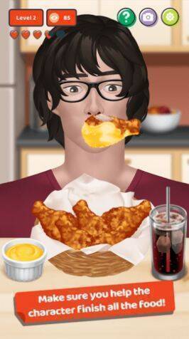 4. 能在游戏比赛中获胃之王头衔,各级别有不同食物选择。