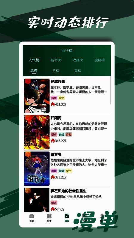 漫单漫画 app 官方版是一款每日实时更新海量漫画资源的手机平台。其特色在于独有的实时动态排行榜,会依据平台漫画的点击率、阅读量、更新速度等多条件判断,更替榜单上的漫画作品,用户轻点即可找到感兴趣的漫画在线阅览。