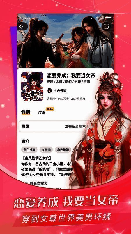 点点穿书,一款极为出色的小说阅读软件!它拥有海量优质小说资源,类型丰富多样,无论你钟情言情、玄幻,亦或是武侠、都市等各类题材,都能在此轻松寻得。软件功能实用,可精准分类找书,还能添加书架方便随时阅读,云端书架空间大,连载更新速度快。界面简洁美观,操作易上手,更有夜间模式护眼。此外,还有全新阅读体验、丰富活动等亮点。