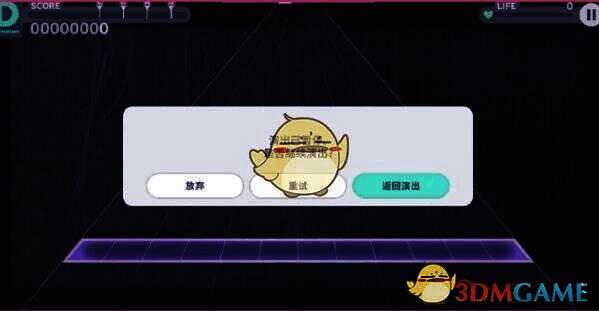 演出时不会因玩家生命值归零而失败,但是无法选择歌曲重来与放弃。
