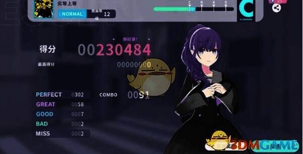 8、完成之后,将通过中的表现显示分数、分数等级与COMBO数。