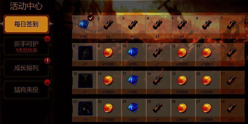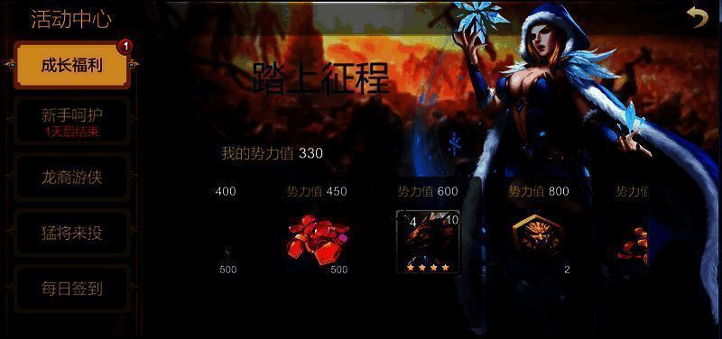 10、签到+成长福利送180抽,并可领取3个稀有英雄