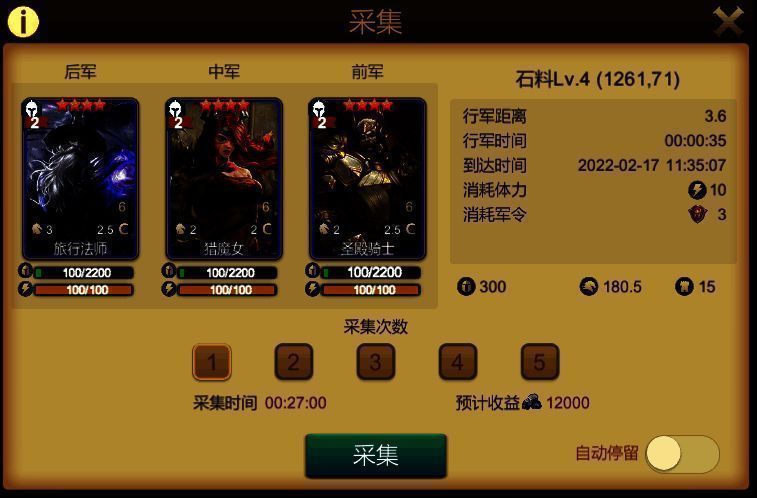 7、打下4级地后,及时进行采集,注意石料需求是其他材料的2倍