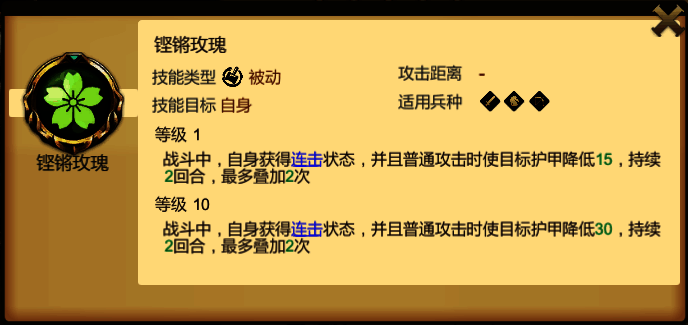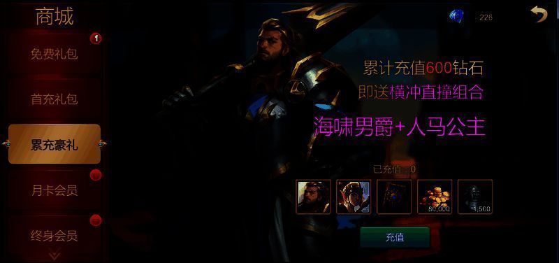 累充礼包-冲撞组合,专属技能发动率比较高,所需技能比较容易获得,3星连击,4星致命之刺、剑风侵袭、反击光环
