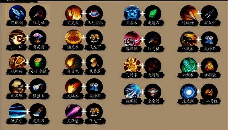 辅助: 红乌标(伤害),伏龙甲(减伤),扶桑芝(可选),上元戒(弹道数),虎睛石(cd),霄灵荷(可选,范围),千水镜(可选,持续时间),气劲掌绑定天河结,具体的看你需求。