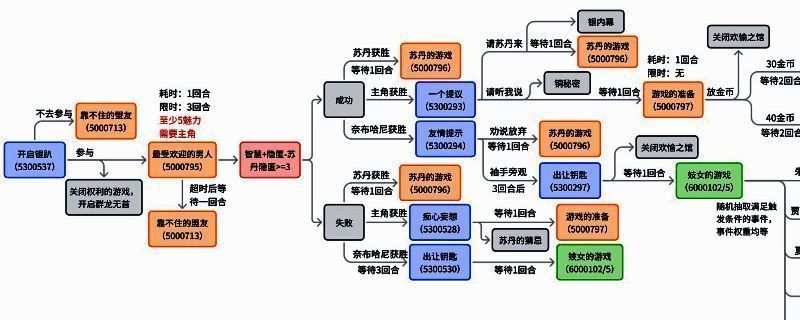 在这之后根据获胜者的不同,一共有三种游戏:苏丹的游戏,你的游戏,妓女的游戏。其中,妓女的游戏为随机抽取任意一个游戏,具体见流程图。