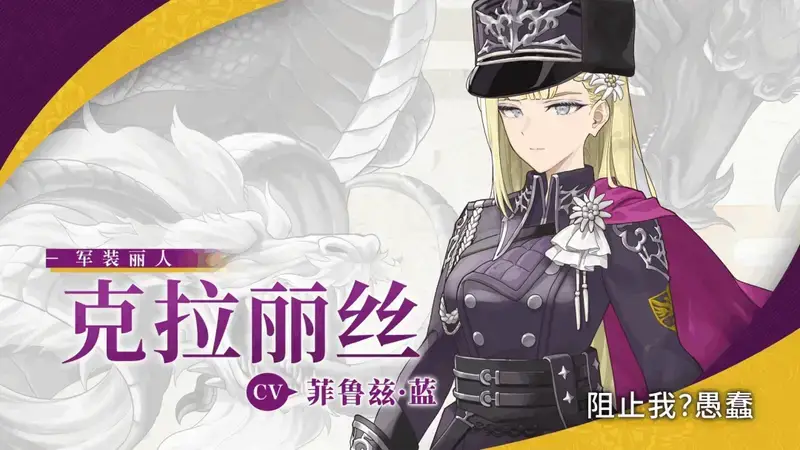 克拉丽丝是神秘组织的首领,为达成某个目的而来到东国,在战斗中,她的一头金色长发总是随风飘扬,性格如同军人般果断冷酷,面对任何情况都毫不畏惧。