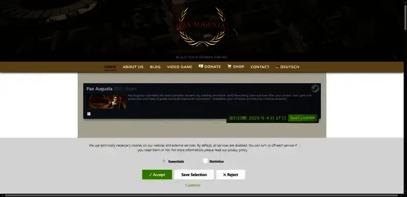 《Pax Augusta》是由Roger Gassmann制作Senatis发行的罗马城市营造游戏,而这款游戏的官网地址就是一个官网页面,另外Steam平台的购买页面也算官网,进入到这个游戏的购买页面基本上就能知道所有这款游戏的信息。