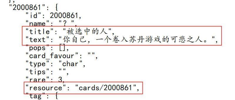 方法还是ctrl+f搜索2000861,然后将"resource": 后面的代码修改成你需要的人物立绘。