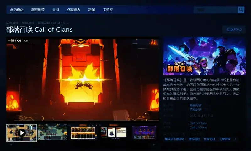 《部落召唤》是一款以西方魔幻为背景的线上回合制战棋竞技卡牌游戏,而这款游戏想要下载还是比较麻烦的,下载的第一步就是安装Steam平台,然后注册账号登录,并且搜索“部落召唤 Call of Clans”,然后点击购买,之后点马上开玩即可。