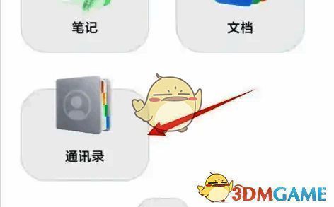 2、在功能选项中下拉到最后,点击通讯录图标