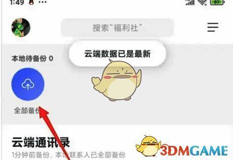 3、点击全部备份,这样就可以将手机的通讯录备份到网盘中。