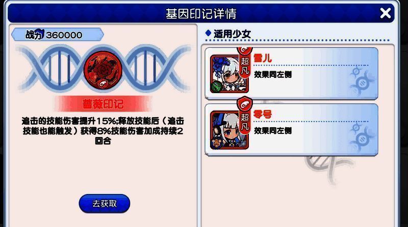 蔷薇印记:对雪儿和零号增幅十分不错因为每次追击都可以叠技能伤害,多动和多动的追击也叠并且持续两回合。推荐雪儿和零号练了几个抽几个。