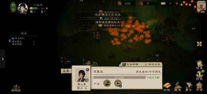 2.设置调好后,直接用自带采集技能的鲍小翠,去采集浆果以及野菜,前期不能自动采集,需要手动操作,别让她停下来