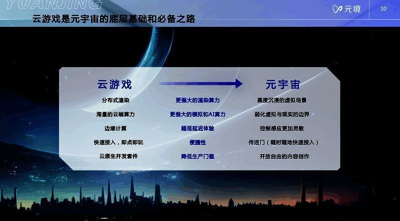 我们认为云游戏要持续走下去,不只是商业模式的持续创新,在技术上也是需要逐渐深化。这一点去年在行业当中已经表现的比较明显了,我向大家分享一下元境做的关键动作。