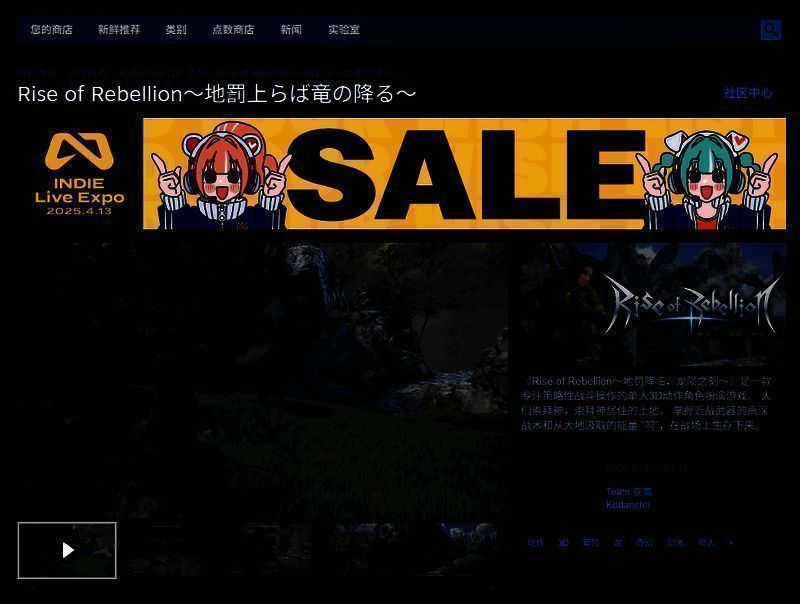 《Rise of Rebellion~地罚降临,龙陨之刻~》是一款专注策略性战斗操作的单人3D动作角色扮演游戏。而这款游戏的官网地址就是Steam平台的购买页面,进入到这个游戏的购买页面基本上就能知道所有这款游戏的信息。