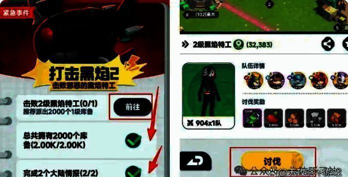 只需要满足红色箭头的任务要求,就能前往讨伐黑焰特工,可以多次讨伐,每打过一次黑焰特工的等级就会提升一次,目前小编已经看到有大佬打到十几级了。