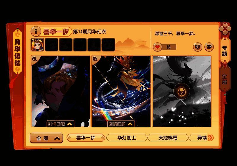 从本期月华幻衣开始,召唤灵的月华记忆板块将迎来了新的迭代。新版月华记忆不再区分双结局,而是改为三段式的剧情,玩家只要完成每段剧情,即可解锁精美插画奖励!
