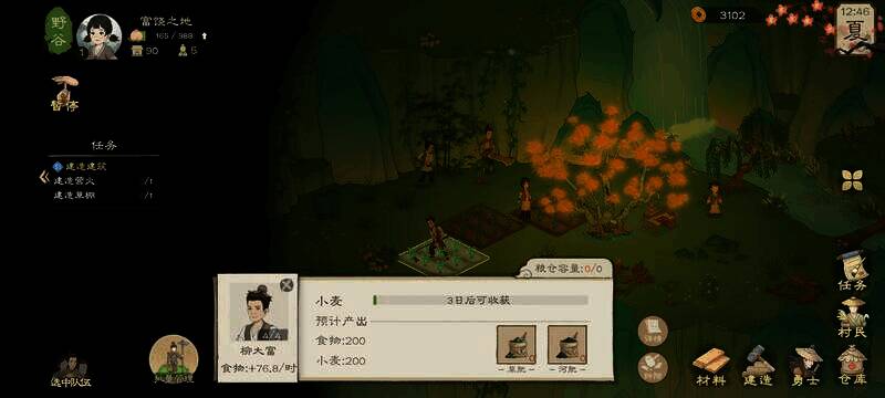 前期食物却必须种田,一个人可以管理四块地,开局直接用柳大富种就行了