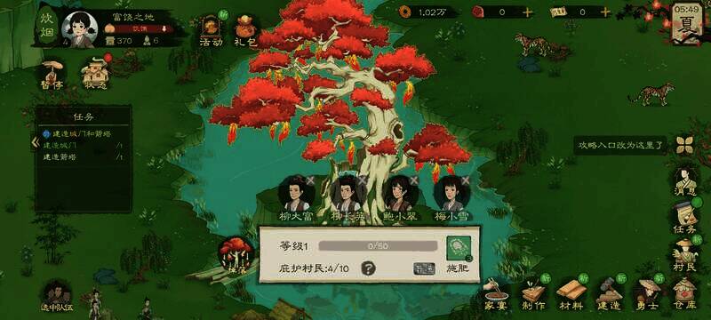 四级之后会解锁不死树,也就是到这个时候,我们会解锁兽潮机制,会有怪物来攻打你,就会破坏你的城门,城门攻破进去之后,就会开始屠戮村民,所以大家一定要做好防守,防守失败的话,会损失建筑耐久以及食物和村民
