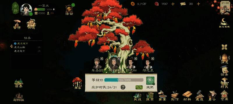 桃园2是有季节环境机制的所谓春夏秋冬,大风雨雪,比如说你冬天就更容易感冒,夏天更容易中暑啥的,在不同的季节环境下,生的病也不同,病情程度也不同,有就是没地方住,在夜晚的时候会着凉,这个时候我们就需要建造更多的房子