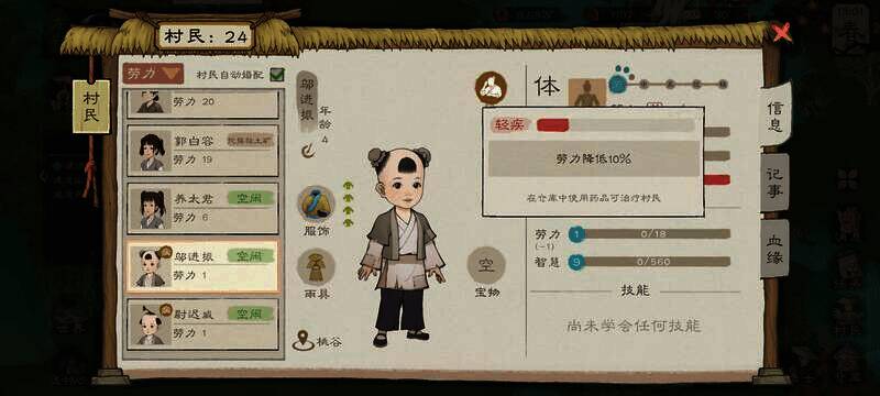 只要村民生病就会上负面buff,我轻疾就是劳力降低10%,就是干活效率更低,同理如果不管的话负面buff也会更多,更加严重直到死亡