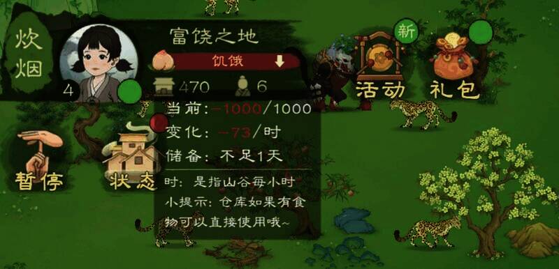 储备的话就是你的存粮,看你够吃几天,饥饿值高的话,村民寿命会变低的,干活效率也会变低,就是不知道会不会被饿死了