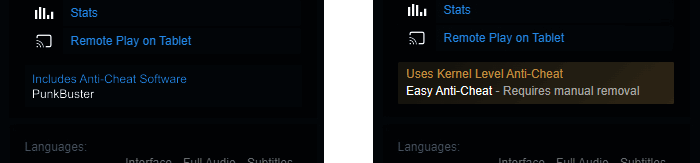 因此Steam方面现在在“编辑商店页面”部分添加了一个新字段,开发者可以在其中标明随游戏安装的任何反作弊软件,填写后这些数据将在游戏的Steam商店页面上显示给用户。